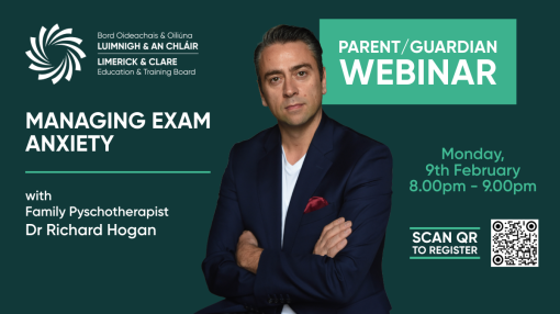 Please feel free to join us for an exclusive webinar on Monday, 9 February 2026 at 8pm with renowned family psychotherapist Dr. Richard Hogan as he shares practical, evidence-based strategies to help parents and guardians navigate the next few weeks and months of exam time in your household. Dr. Hogan will move beyond basic study tips to explore the psychological roots of performance anxiety, providing you with the tools to foster resilience, maintain open communication, and keep stress levels manageable for both you and your child/children. Richard will cover some of the following;